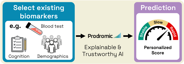 Prodromic combines data from cognitive tests, health records, imaging, blood biomarkers, genetics, and emerging proteomic signals.